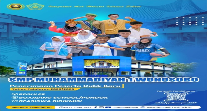 Pendaftaran Peserta Didik Baru SMP Muhammadiyah 1 Wonosobo Tahun Ajaran 2025/2026 Telah dibuka yuk daftarkan putra putri ke SMP Muhammadiyah 1 Wonosobo kami menyediakan program reguler dan program boarding school, SMP Muhammadiyah 1 Wonosobo telah terakreditasi A sesuai dengan Surat Keputusan Ketua Badan Akreditasi Nasional Sekolah/Madrasah Nomor: 1359/Ban-Sm/Sk/2022 Tentang Penetapan Hasil Automasi Akreditasi Sekolah/Madrasah Tahun 2022.